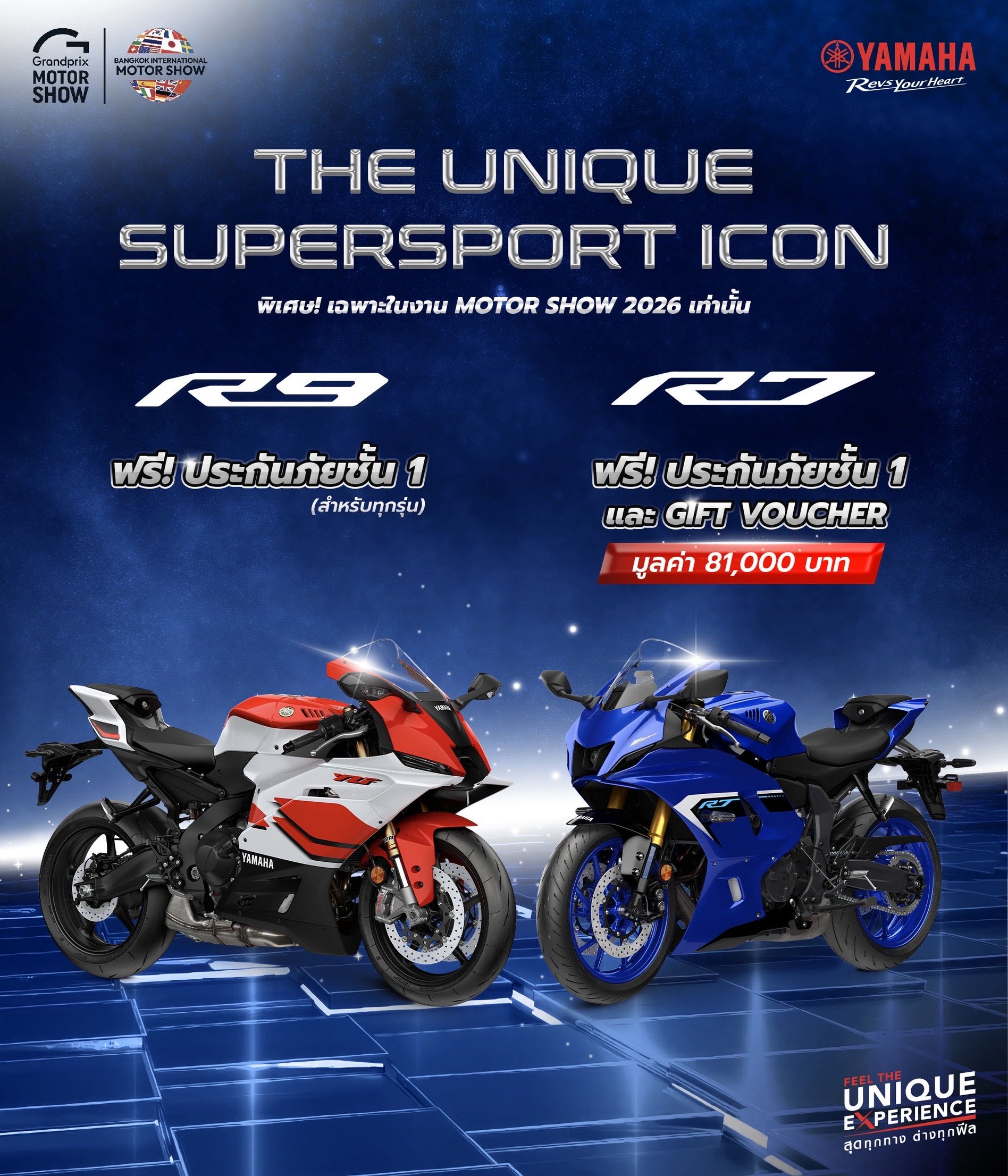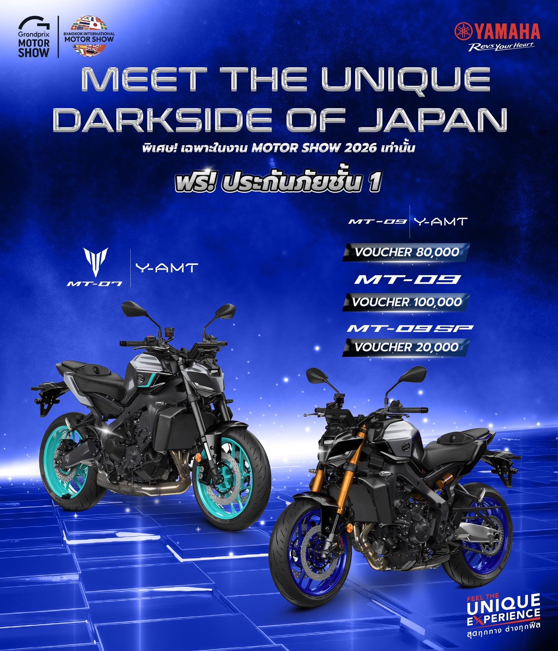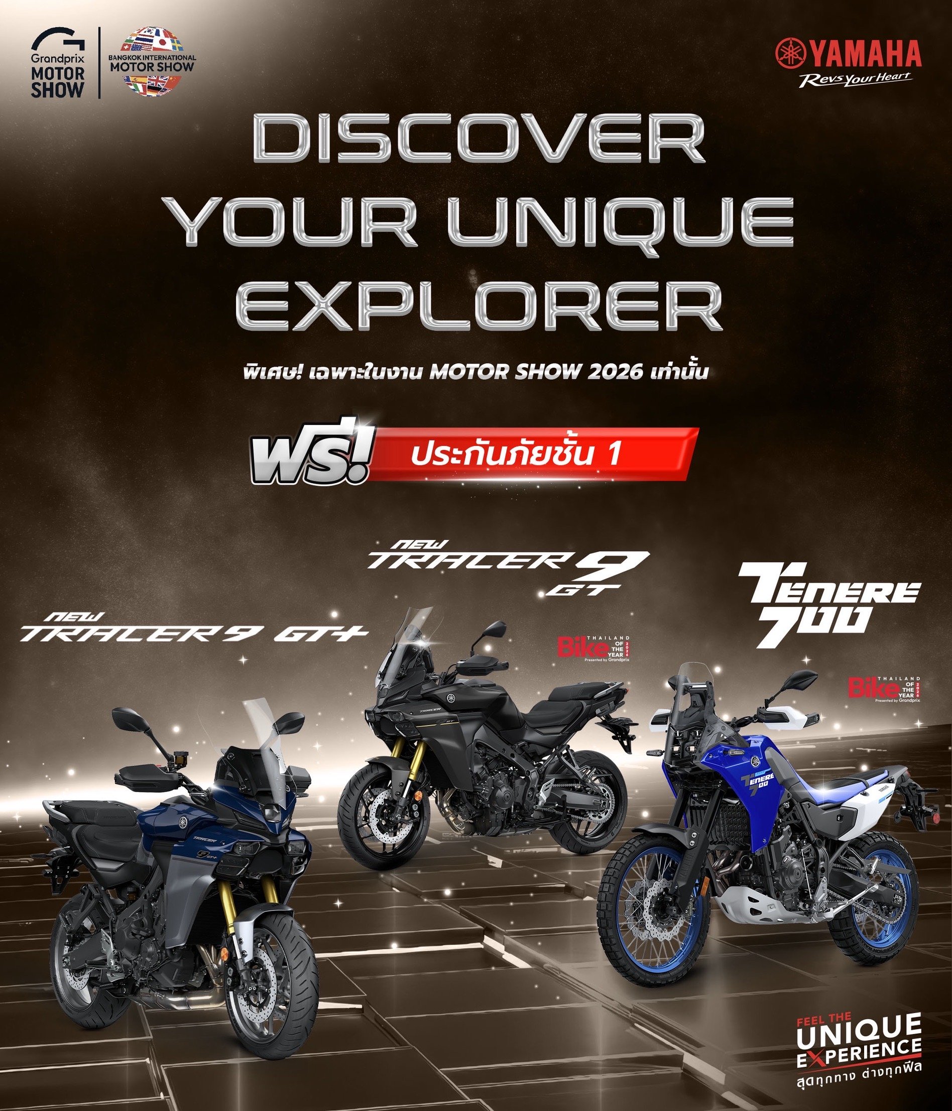• รุ่นอื่น ๆ รับฟรีประกันภัยชั้น 1 ได้แก่ Tracer9, Tracer9 GT+, R9, TMAX Tech MAX, MT-07 Y-AMT และ Tenere700